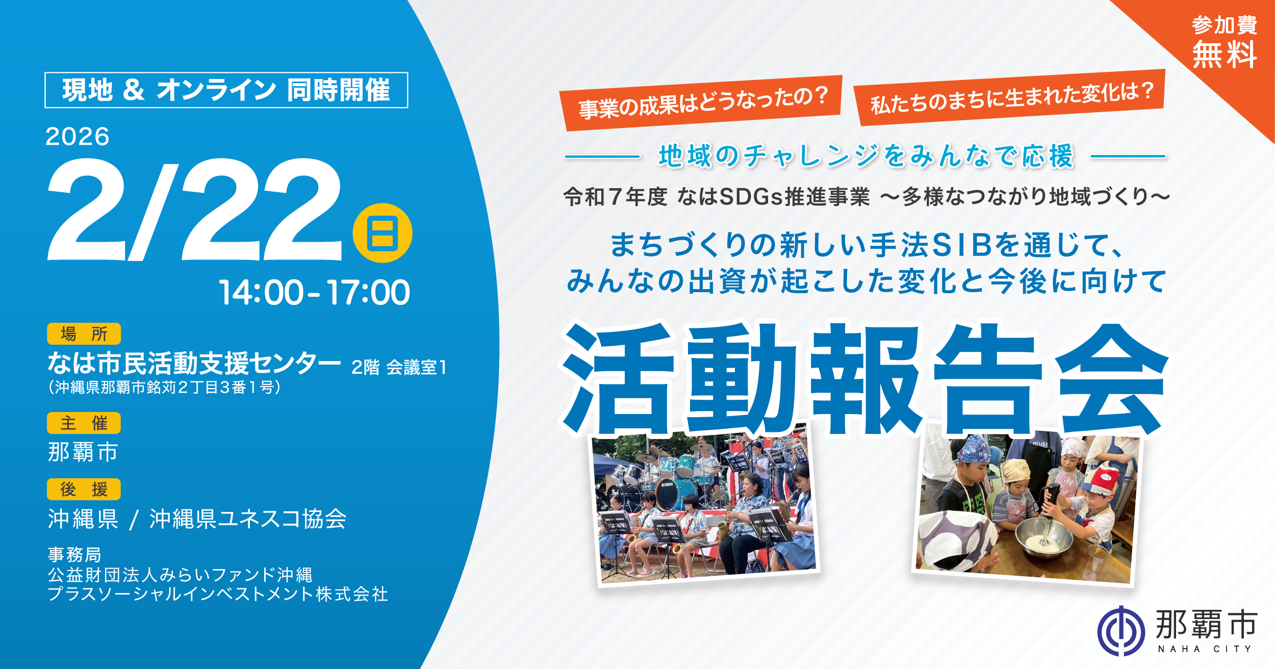 主催: 那覇市 後援: 沖縄県 / 沖縄県ユネスコ協会 事務局: 公益財団法人みらいファンド沖縄 / プラスソーシャルインベストメント株式会社